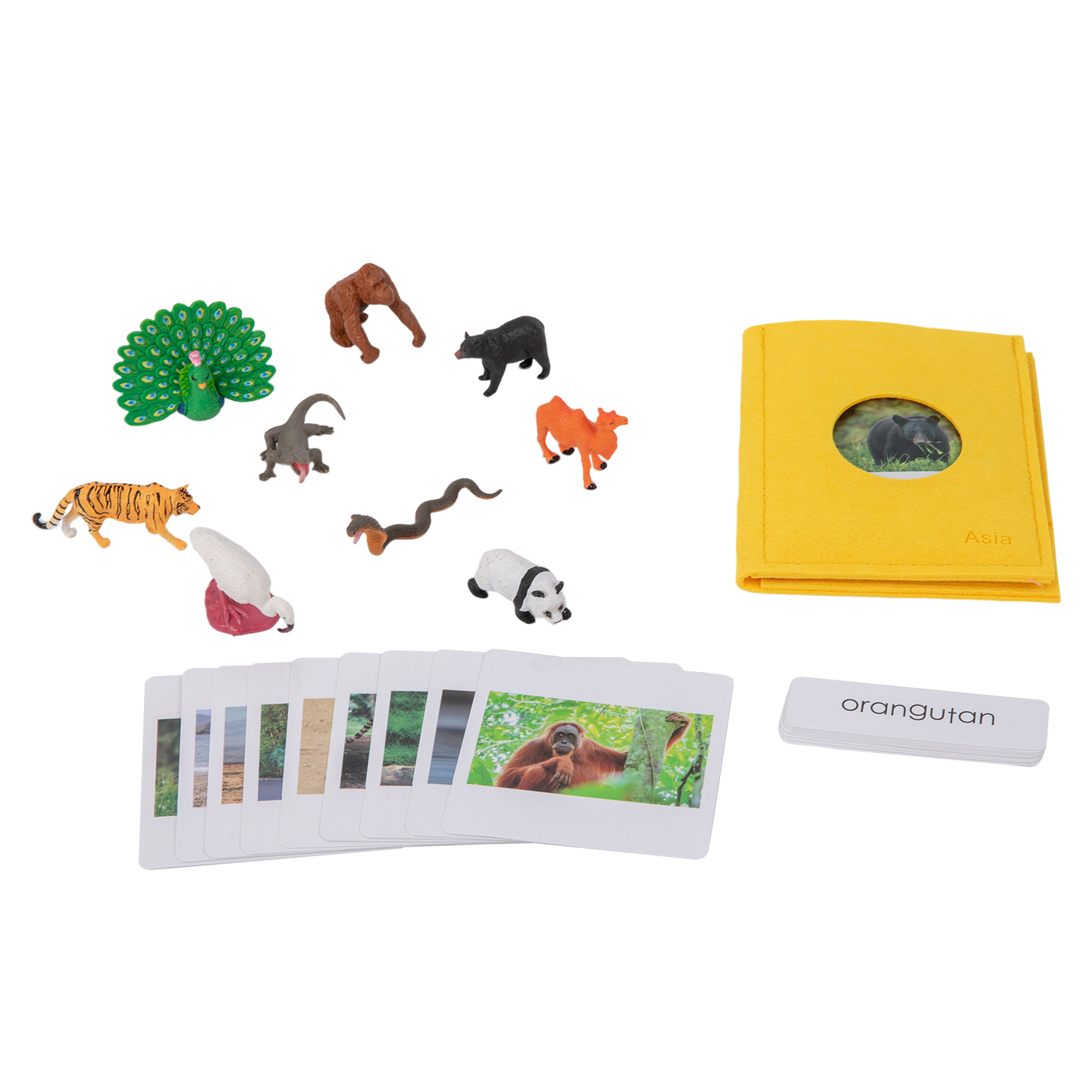 Montessori Animal Matching Set – Asian Wildlife Theme (with 3-Part Card Pouch)